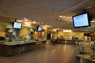 This is just one of several improvements we’ve made recently in the dining room – we’ve come a long way toward making the dining experience more enjoyable for our guests and staff. There are new menu items, combo meals, and sauté specials; we’ve increased the selection of healthy foods and beverages and are now offering Dunkin’ Donuts coffee. There is new furniture in the dining room, and paper menus have been converted to new electronic menu board monitors, which reduces the amount of paper, laminating sheets, sign holders and ink we would require to produce menus.